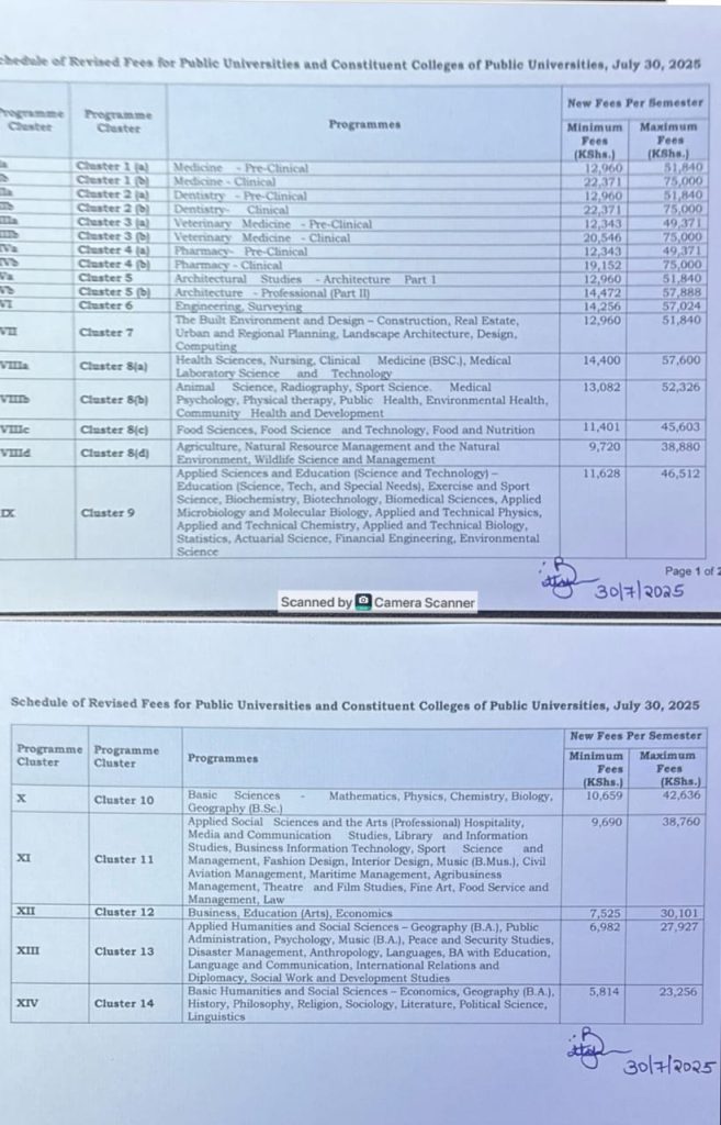 Public universities are hereby directed to adopt the new fees schedule effective 1st September, 2025 for the first year as well as continuing students.